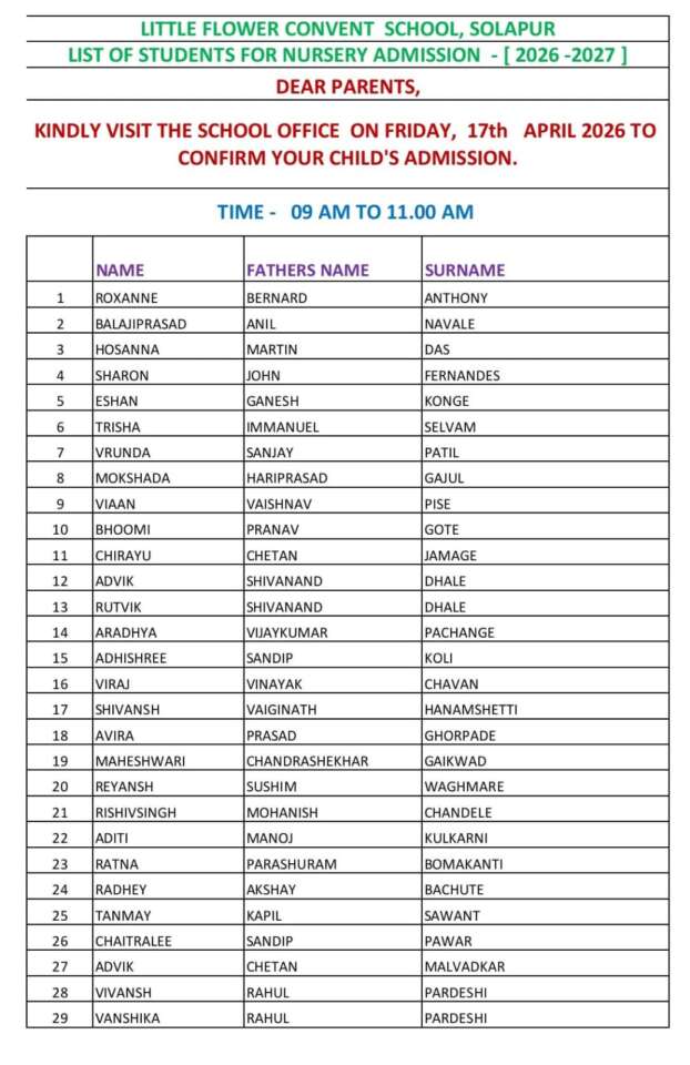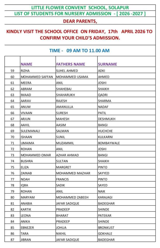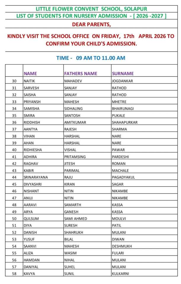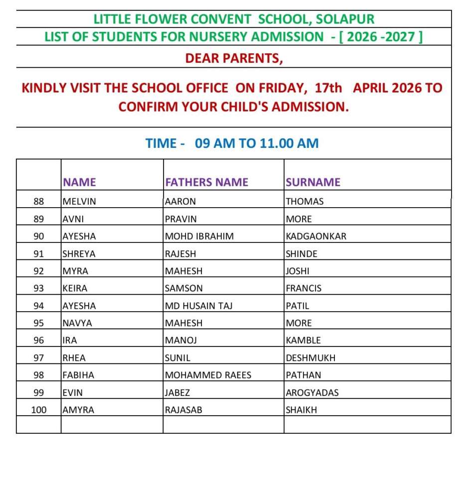 NURSERY SELECTED LIST 2026-2027